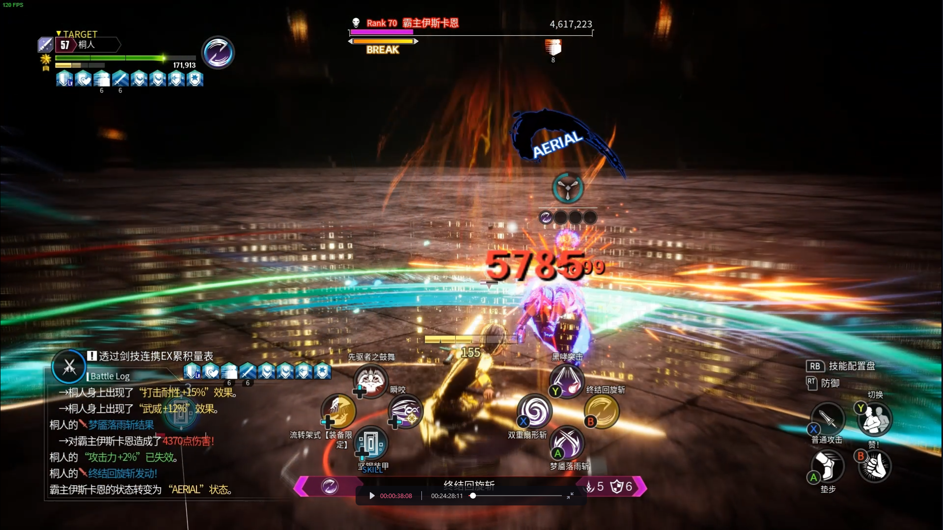 普攻升龙拳。拿头顶上完美防御触发心神游梭。使用空中剑技(空中增伤)有概率打出装甲瓦解,直接进入AIR。
